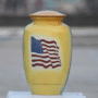 Patriotic-themed urn with a waving U.S. flag on a yellow background, honoring the memory of a proud American or a military veteran.