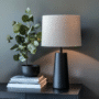 Black Resin Table Lamp with a Beige Shade