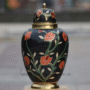 A striking black enamel urn adorned with hand-painted red blossoms and golden accents—symbolizing beauty, remembrance, and eternal love in elegant form.