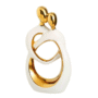 This is a QIANLING Ceramic Couple Statue, a modern abstract sculpture depicting two figures embracing. It features a flowing white ceramic form with elegant gold accents on the heads and inner curves, symbolizing love and connection. This figurine serves as a sophisticated piece of home decor.