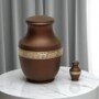 A dignified bronze urn with an intricate floral band, paired with a matching keepsake. Perfect for honoring a loved one with elegance, tradition, and timeless grace.