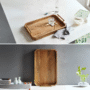 This is a West Elm Deco Wood & Brass Handle Tray, featuring a rectangular wooden base with brass handles.